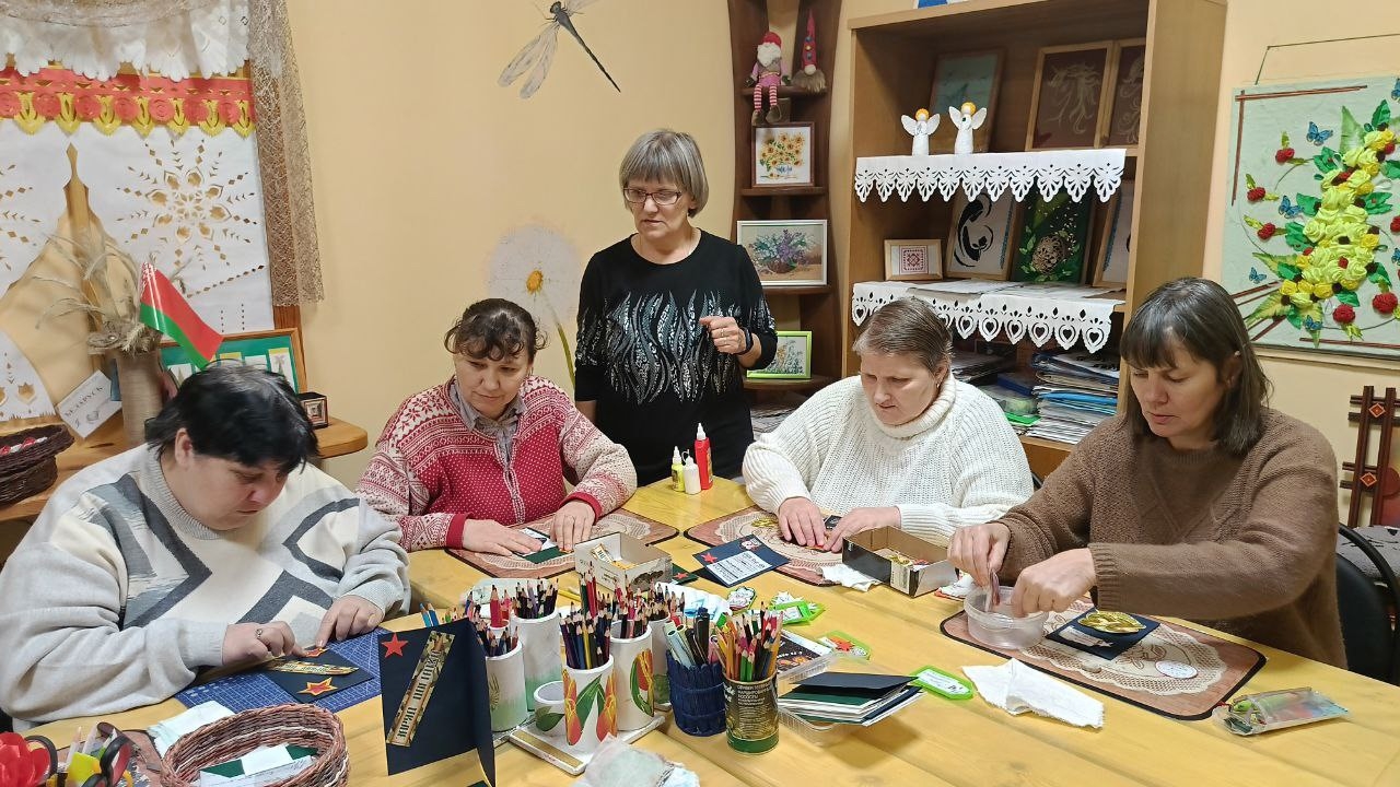 В преддверии праздника — Дня защитника Отечества для проживающих пансионата был проведен мастер – класс «Поздравительная открытка».