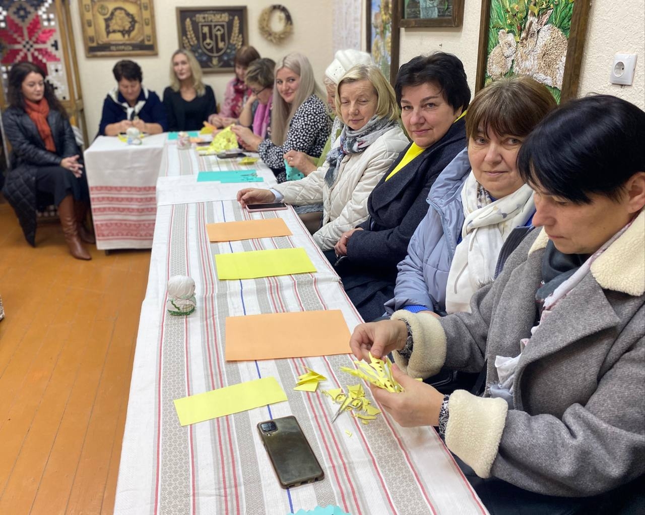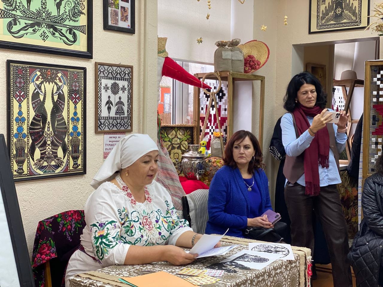 Вторая часть семинара прошла в Петриковском районном доме ремесел, где присутствующие ознакомились с выставками мастеров и сами смогли попробовать вырезать вытинанку.